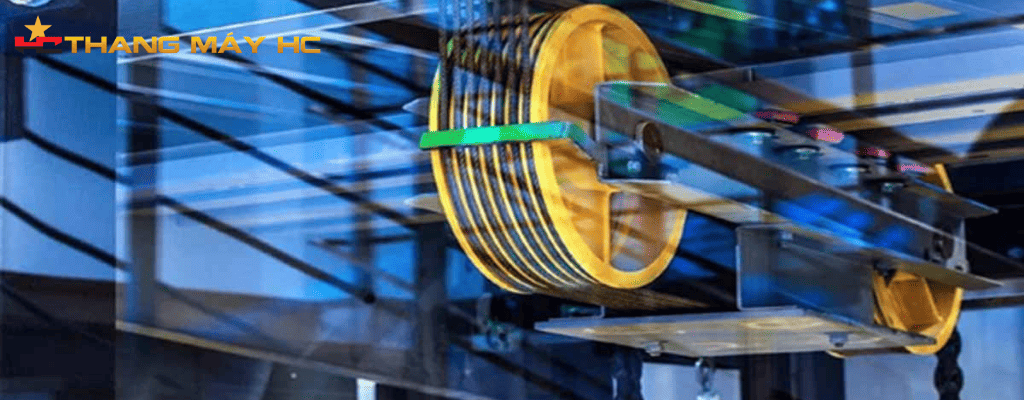 - Lực ma sát này kéo cáp di chuyển từ đó đưa cabin và đối trọng lên xuống theo hướng dẫn của hệ thống
