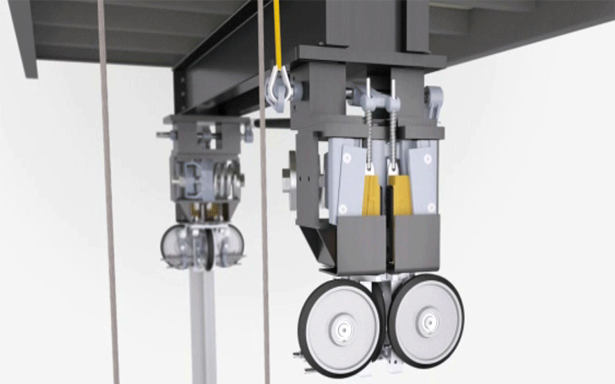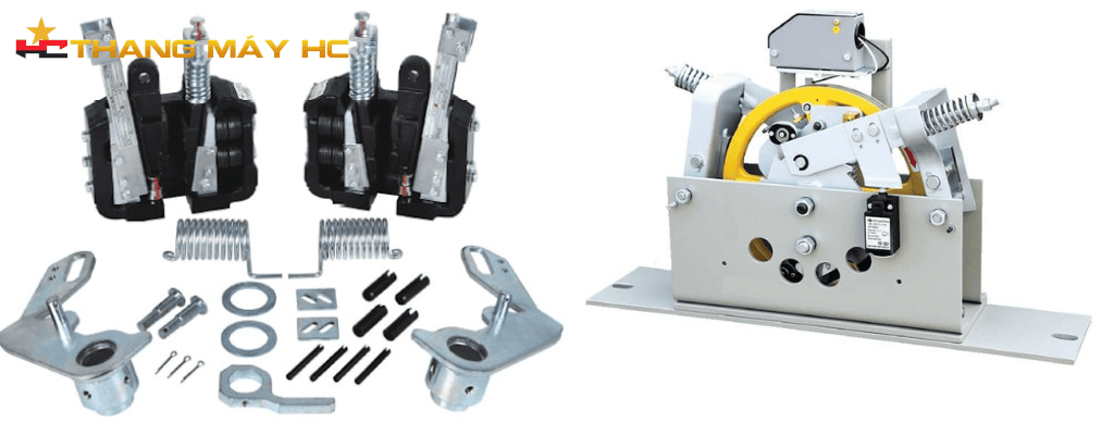- Thắng cơ: Trực tiếp giữ cabin bằng cách kẹp ray dẫn hướng không phụ thuộc vào điện