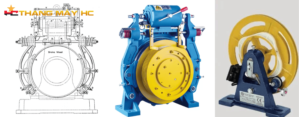 Thắng cơ thang máy bao gồm các thành phần chính: